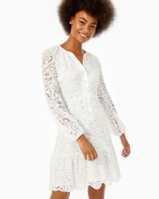 Straight fit crewneck dress with Lilly lace neckpiece long full sleeves with pleat detail at shoulders and elastic cuffs. 36 From top of shoulder to hem based on a size small4. Shop Lilly Pulitzer womens white dresses for summer.